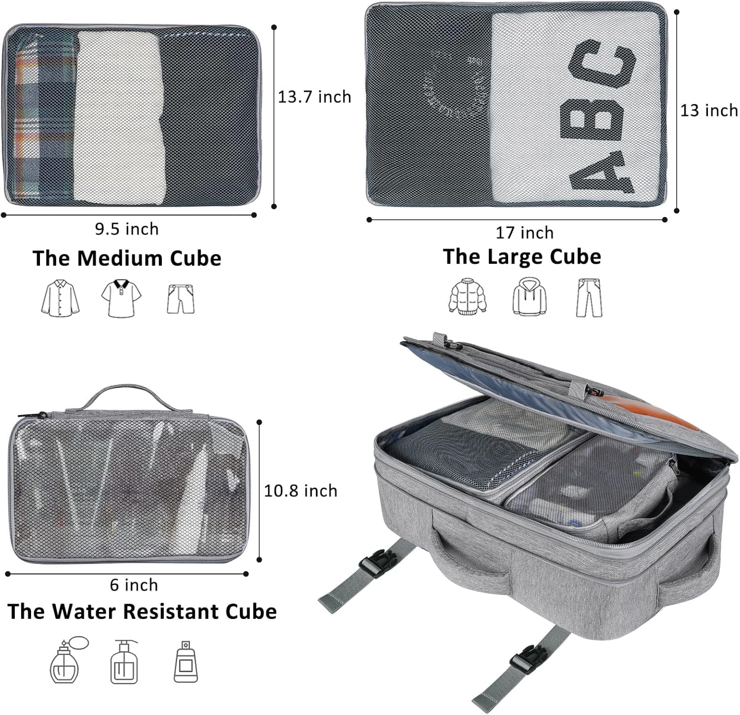 - 【Organized Like a Pro】3 packing cubes (transparent toiletry bag included) + anti-theft back pocket + front organizer. Master travel chaos.