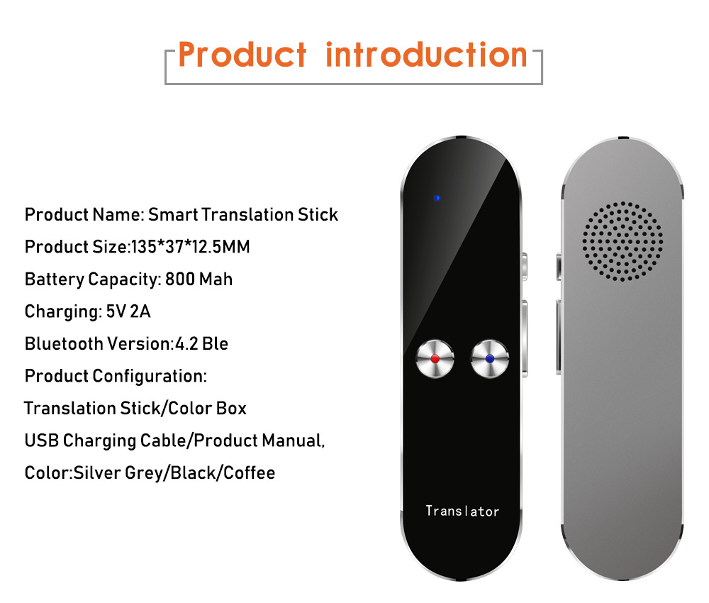 68 Languages Smart Instant Two-Way Real Time Voice Translator Translator 800Ma