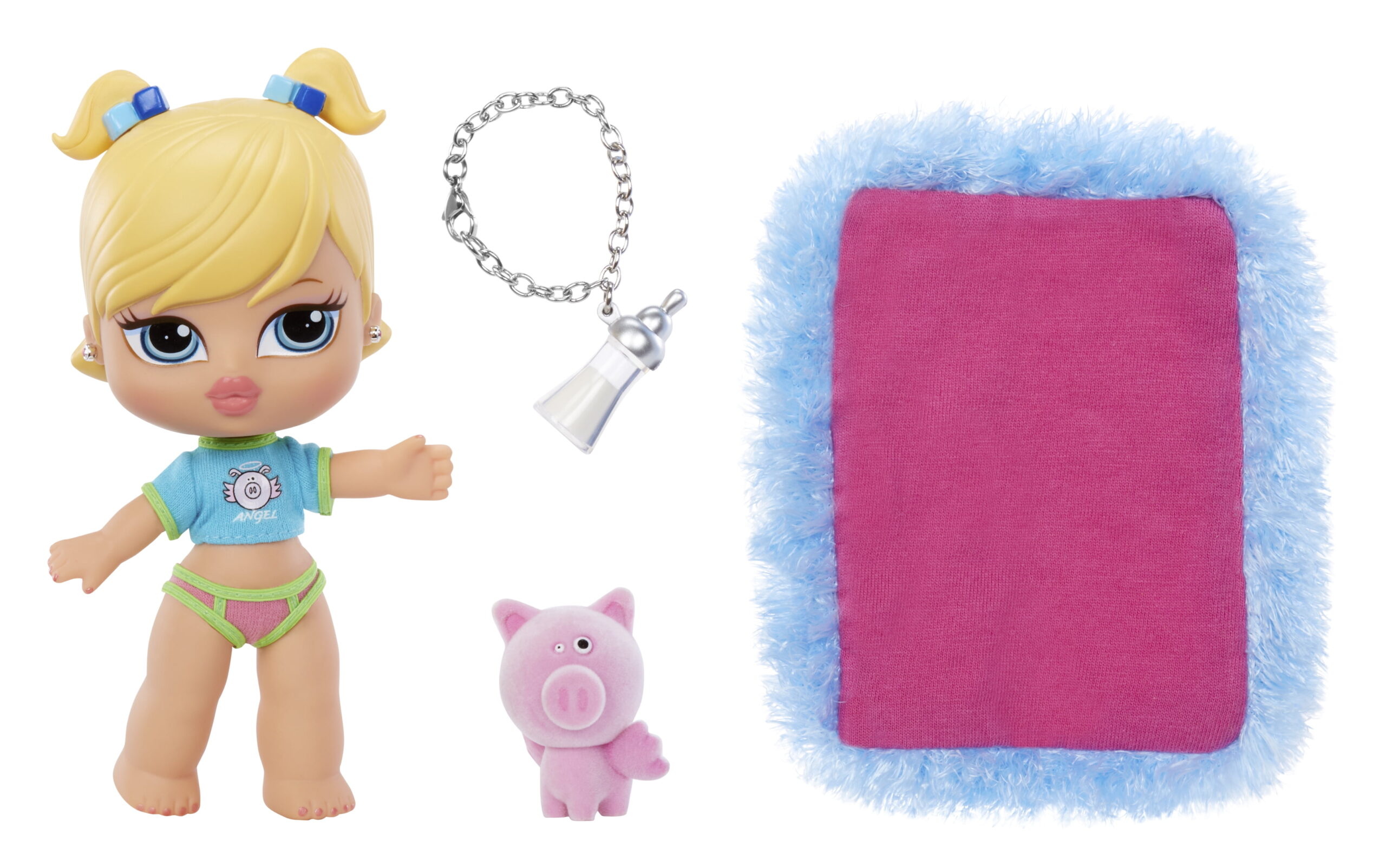 - FLOCKED PET: Each Bratz Babyz includes a unique flocked pet to snuggle based on their nickname/icon—Cloe’s sweet pet is Angel the flying pig!