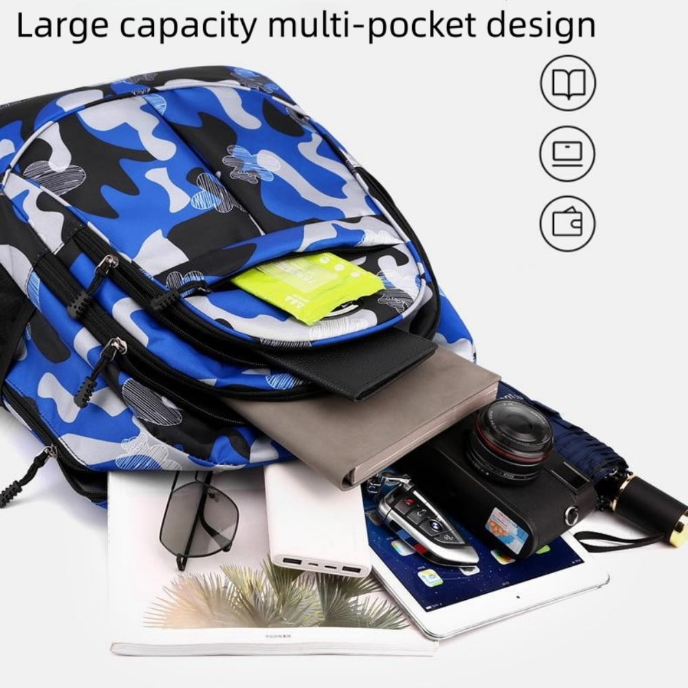 This kids school backpack is designed with multiple compartments, including 1 main pocket, 1 front large pocket, 1 front small pocket, 1 zipper pocket and 2 side pockets, which can be conveniently stored separately for books, pens, Cell phones, water bottles, and other items