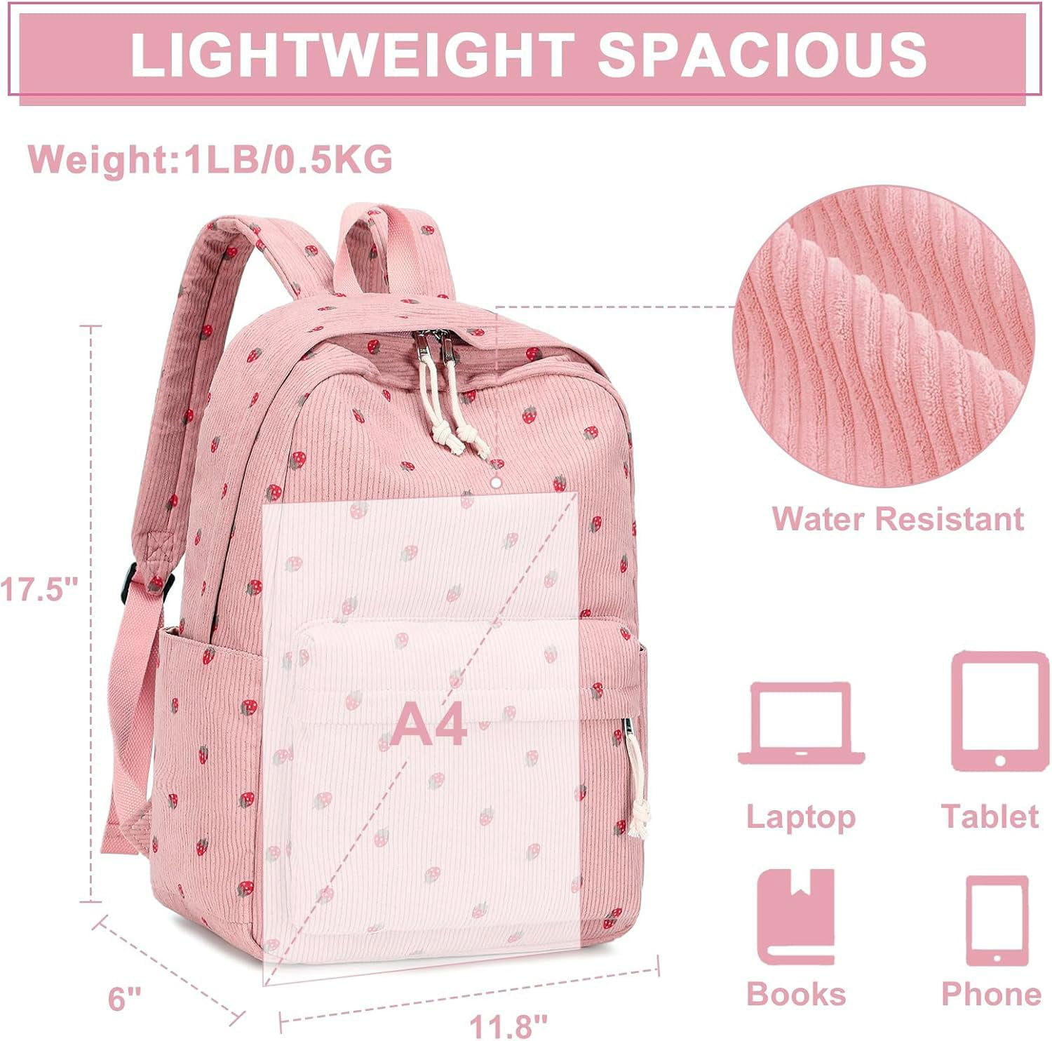- Teen girls bookbags made of high-grade durable water resistant material, elegant and fashionable,backpack for school girls with 2 side pockets. Laptop compartment and a zipped pocket are inside the main compartment. Most of school daily necessities can be loaded. BLUBOON kids backpack elementary school suitable for age 3 + years old kids.