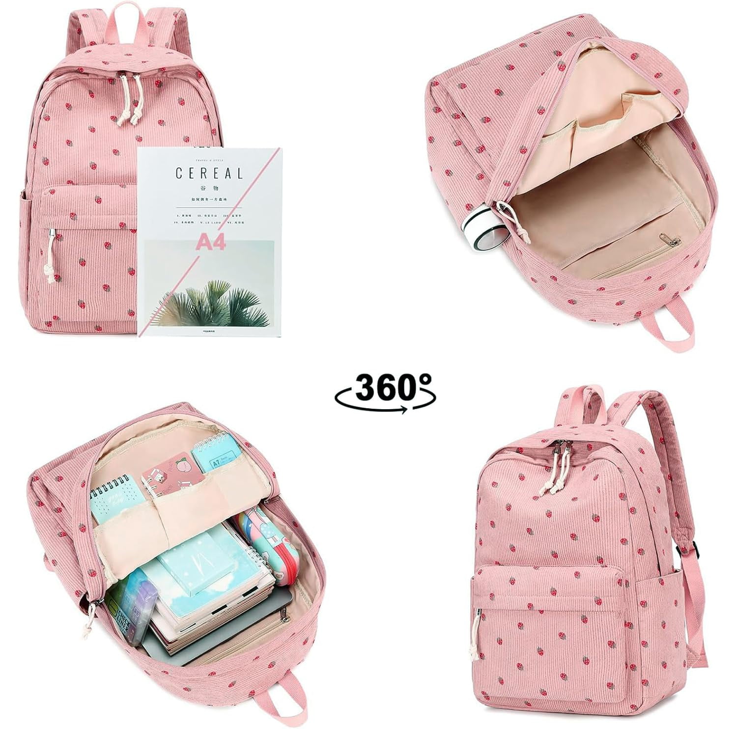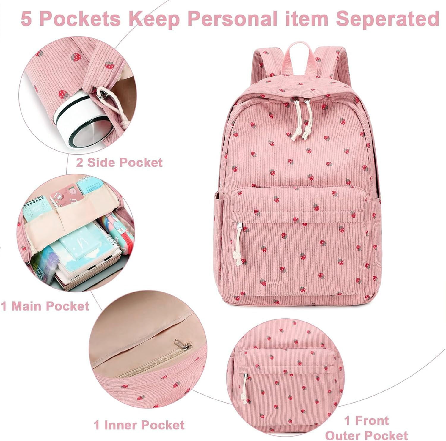 Cute Pink School Backpack – Large Capacity Daypack for Teens & College Students