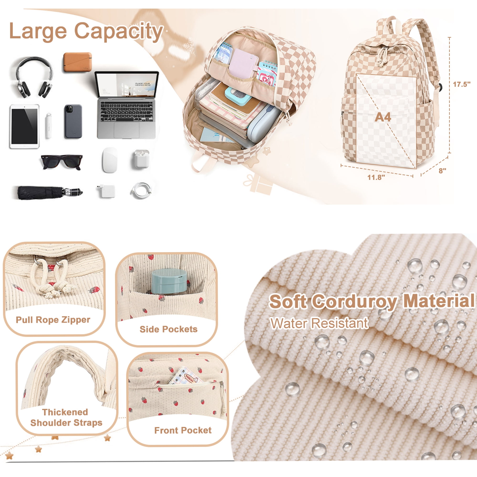 - This girls backpacks for school dimensions: 13 x 6 x 17 inches,perfect for school and casual day trips. If you are looking for a cute and stylish backpack,this is your ideal choice. The bookbag uses a laptop compartment design,there is more space to store daily necessities, clothes, shoes, books, mobile phones, wallets, etc.