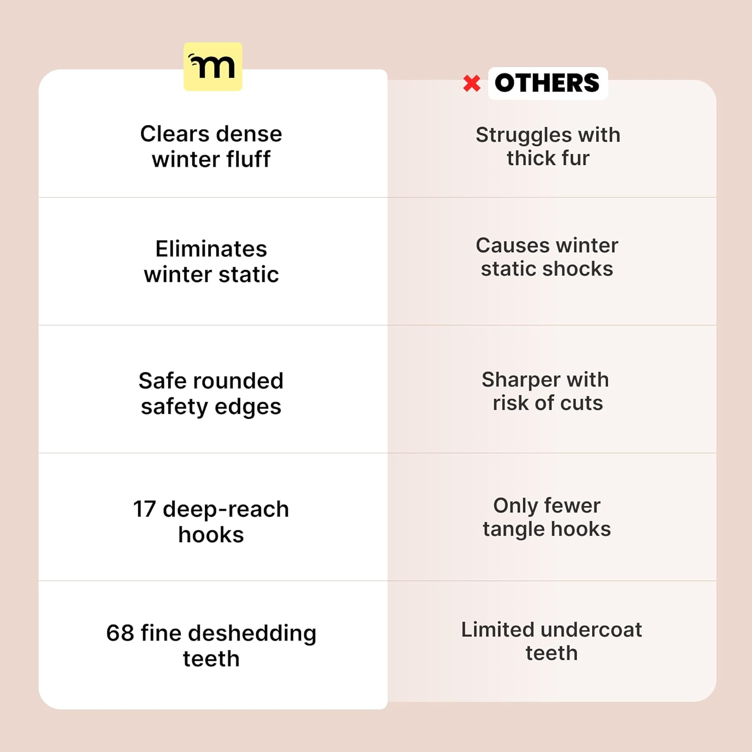 You wouldn’t settle for a brush that tugs, so why should your dog? Malsipree’s dog brush for shedding is both a de-matting and deshedding brush, designed to gently work through dense double coats. With sharpened inner blades and rounded tips, our pet brush cuts through mats without scratching their skin or tugging at their top coat. Then the deshedding side of our long hair dog brush reaches and lifts deep set shedding. Because during National Dog Week and always, your pup deserves the best
