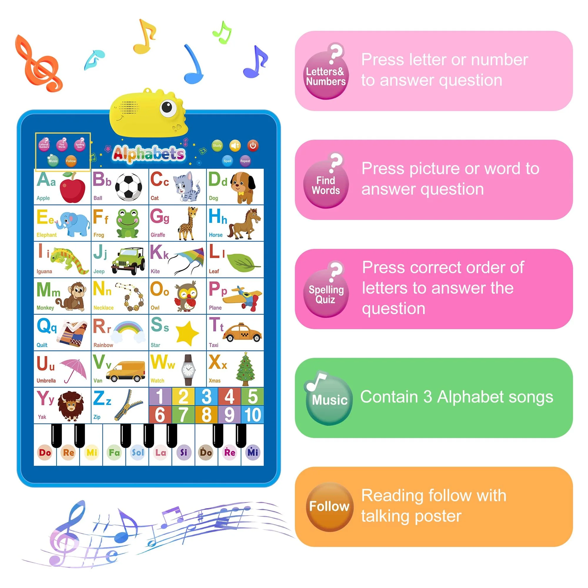 - 🔠👶[Ready-to-Use Toddler Activities]–This user-friendly talking ABC wall chart, with batteries included, provides a seamless setup for captivating toddler learning activities straight out of the box. Hang it effortlessly using the supplied hook and let your little one embark on a fun-filled learning adventure.