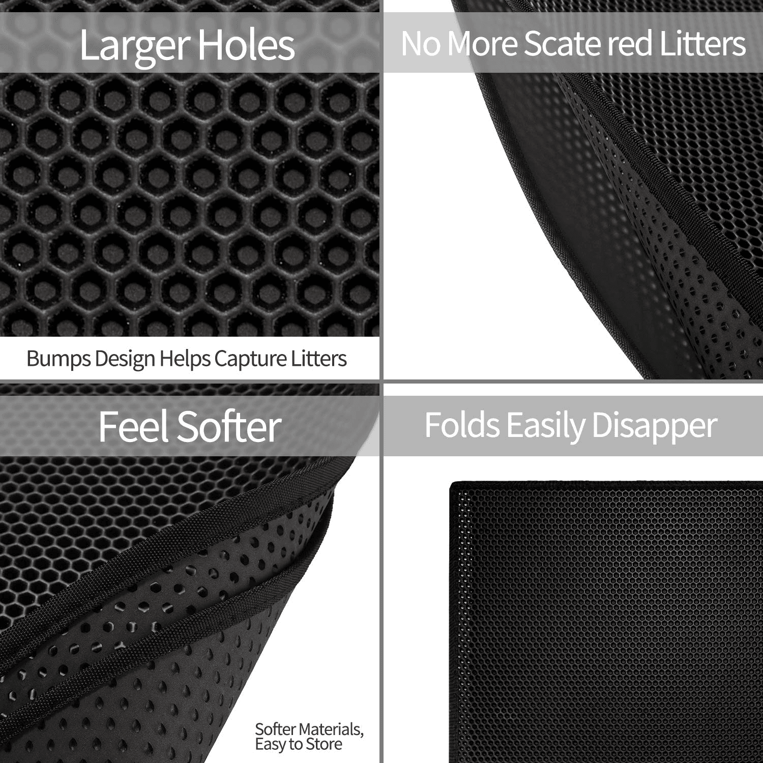 Smart design – With its deep grooves and honeycomb-shaped holes, it traps litter scatter that would otherwise spread on your bare floor, keeping your house mess free.