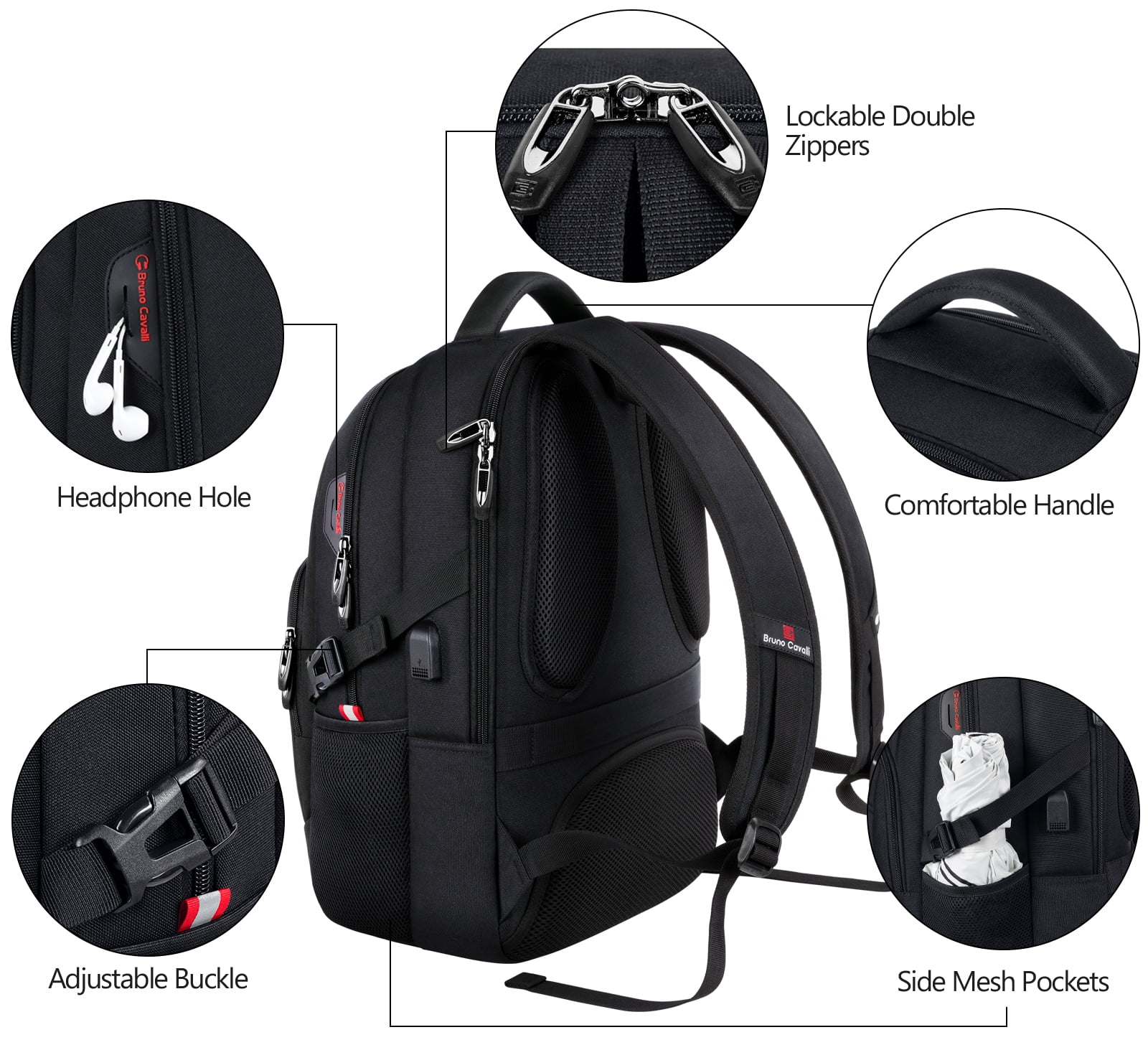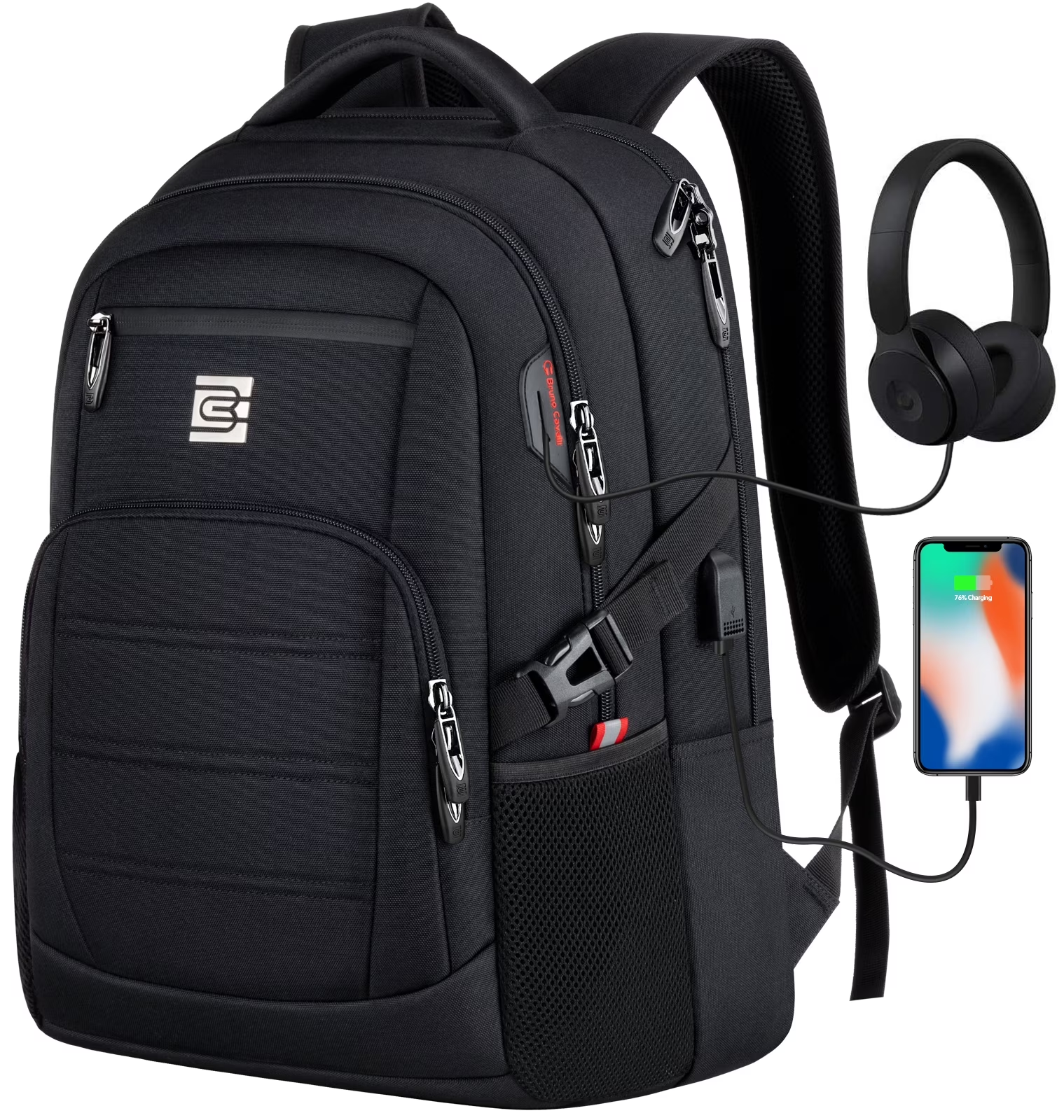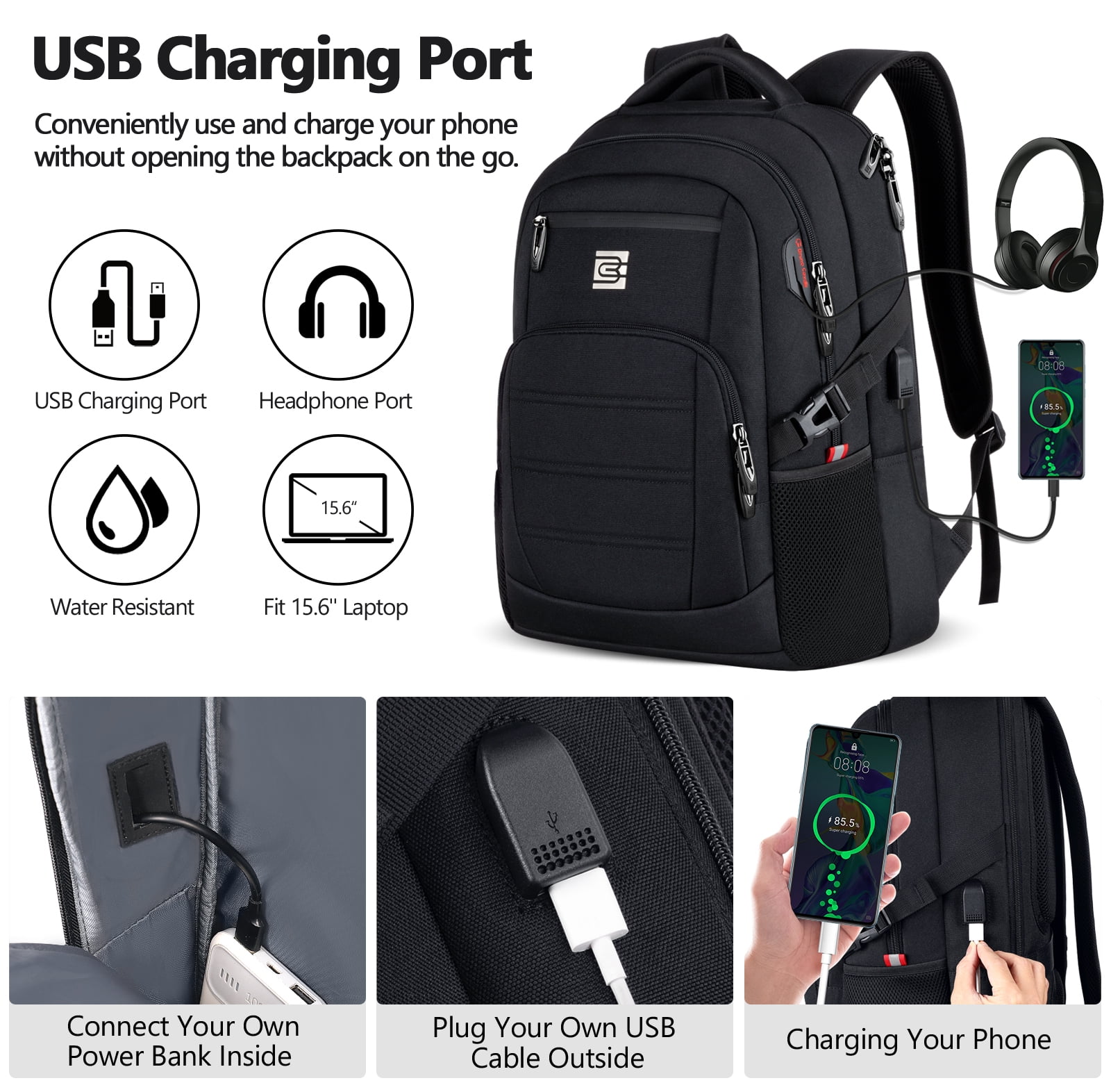 【Convenient USB Port Design】Equipped with an external charging port and built-in cable, our laptop backpack allows convenient device charging on the move. An integrated headphones hole ensures easy access to your music or podcasts.