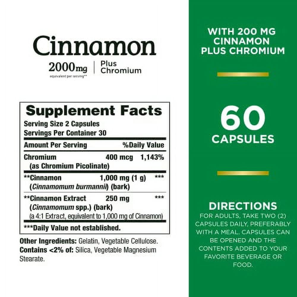 Nature’s Bounty Cinnamon 2000mg Plus Chromium, Sugar Metabolism Support Supplement, 60 Capsules