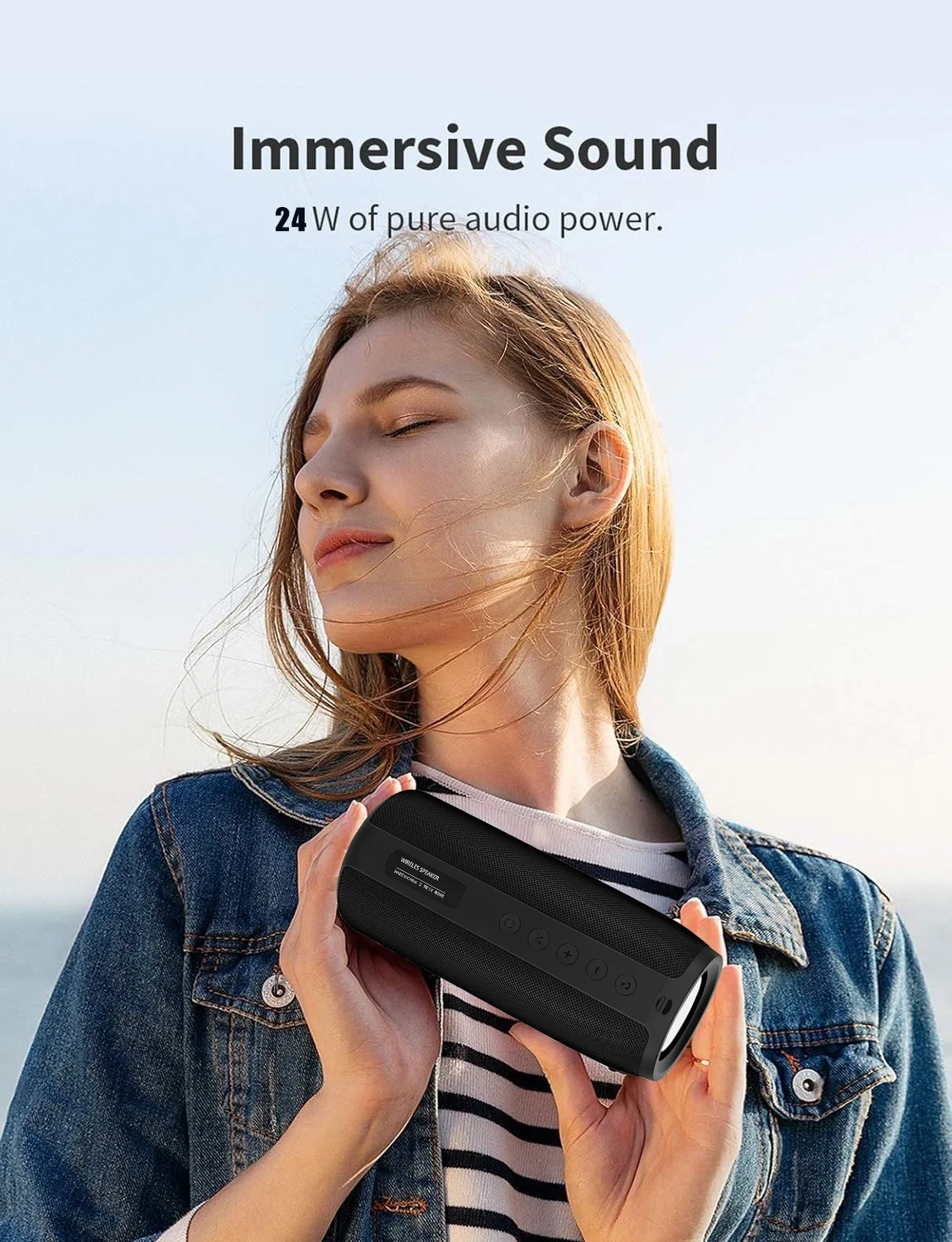 ♫【Immersive Sound Experience】- The bluetooth speaker delivers immersive sound with rich bass, mids and highs, dynamic sound. Even at maximum volume, without any breaking sound.