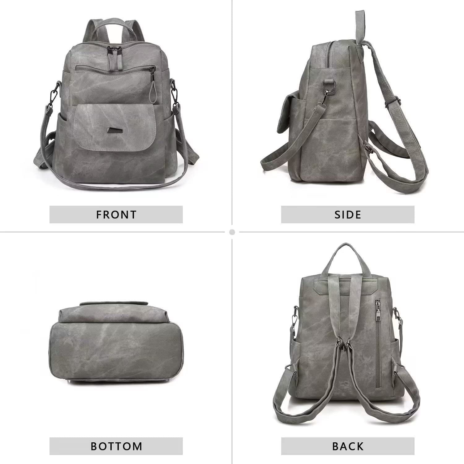 - ✿ The stylish gray hue and sophisticated brushed metal accents render this PU Leather Backpack an impeccable choice for work, shopping, or casual excursions, enhancing your everyday ensemble.