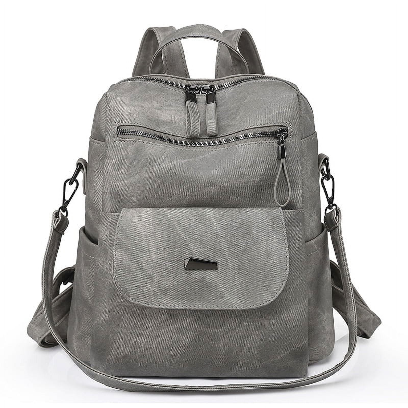 PU Leather Backpack Purse for Women Casual Handbag Ladies Shoulder Bags Gray